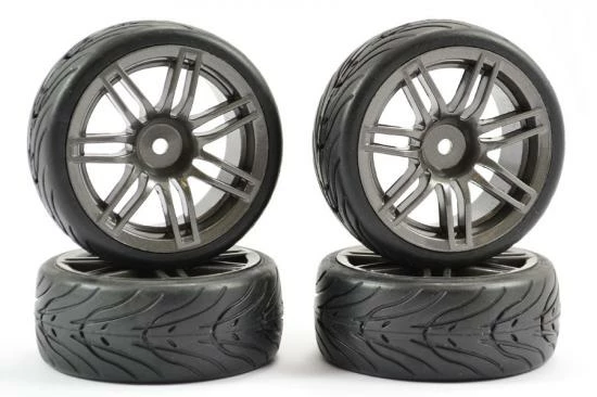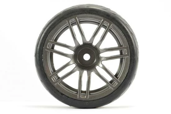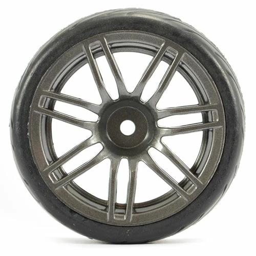 FASTRAX 1/10 STREET/TREAD TYRE 14SP GUN METAL WHEEL