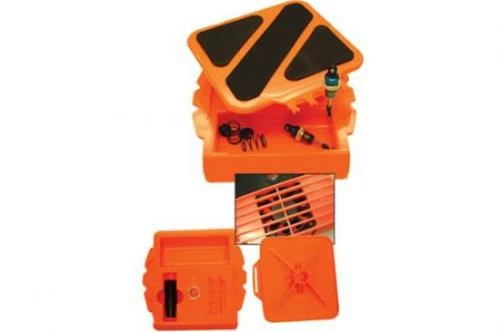 Rotate your car while working to maximum time and pit space. Tray underneath can hold screws and hardware while rotating top can also hold shocks for building. Also available with built in fan for cooling electrics while working between heats.