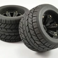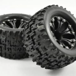 Fastrax Eagle 1:8 MT Tyres Mounted On Spoked Black Half Inch Offset Wheels (2)