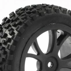 Fastrax Eagle 1:8 MT Tyres Mounted On Spoked Black Half Inch Offset Wheels (2)
